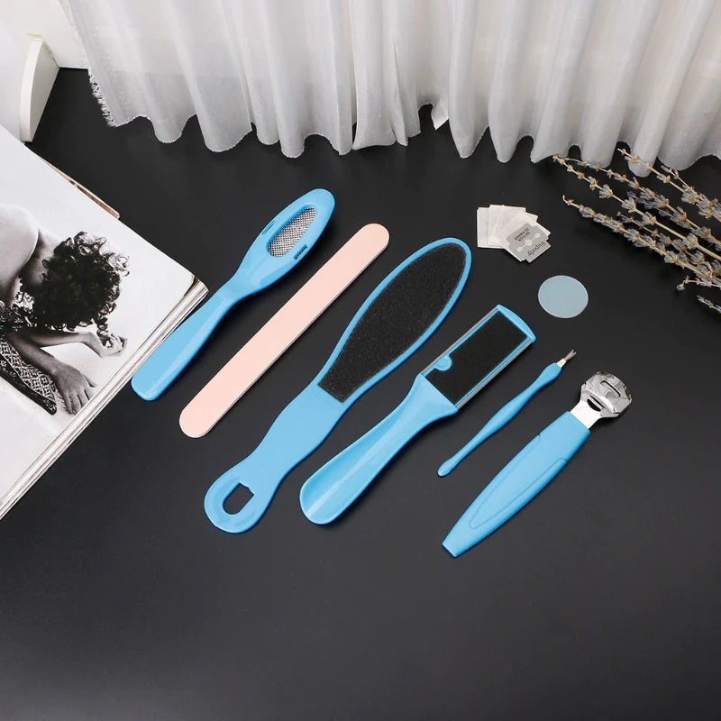 Products include: foot board rubbing, coarse sandpaper, fine sandpaper, dead skin pushing, nail clipper, nail file, foot planer, blade