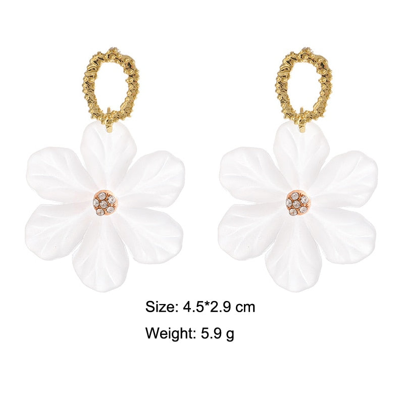 Jewelry: Gold Metal Flower Dangle Earrings For Women Simple Design Long Statement Drop Earring Party Jewelry