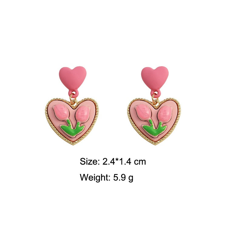 Product: French Floral Dangle Earring Heart Ear Drop for Women Girl